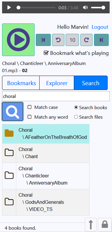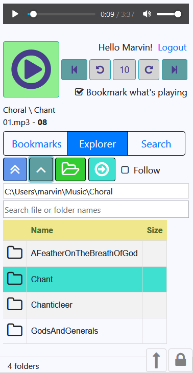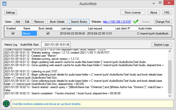 AudioWeb creates a personal website on your computer allowing you to play your mp3 audio files through any web browser.