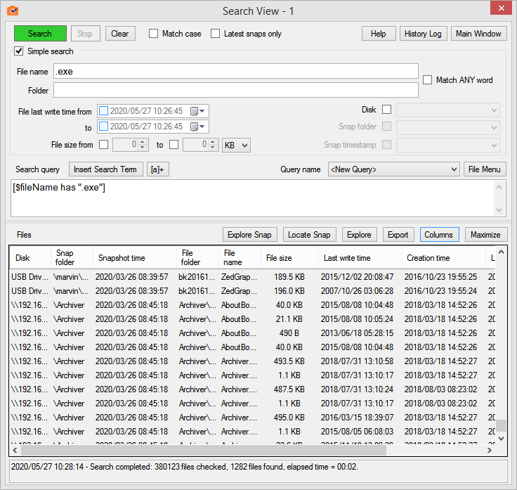 Use DriveSnap to search for files on USB drives, DVDs or network shares even when they are not available.
